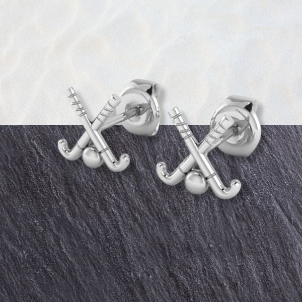 Don't miss the chance to own a true piece of field hockey's essence. Add these sterling silver Field Hockey Crossed Sticks Stud Earrings to your collection or gift them to someone who shares your passion.