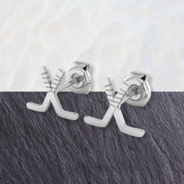 Don't miss the chance to own a piece of ice hockey's excitement. Add these sterling silver Ice Hockey Crossed Sticks Stud Earrings to your collection or gift them to someone who shares your passion. Embrace the spirit of the sport in style, and order yours today.