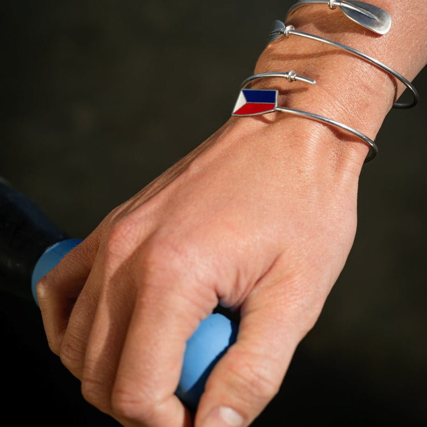 Beautifully crafted by artisans using the finest 925 sterling silver and finished off with the 14k gold plated oar handle. Combined with the classic nature of this bracelet, the US national team colors make this a statement piece. Perfect for everyday wear but also to rowing-related events where you want to highlight your dedication to the US national rowing team!