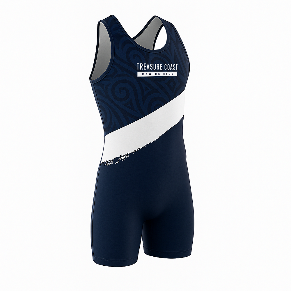 Built for male athletes, this unisuit is available in navy and white, providing both comfort and a fit that steps up for your most intense rows. Embrace your edge with this standout piece in rowing apparel.