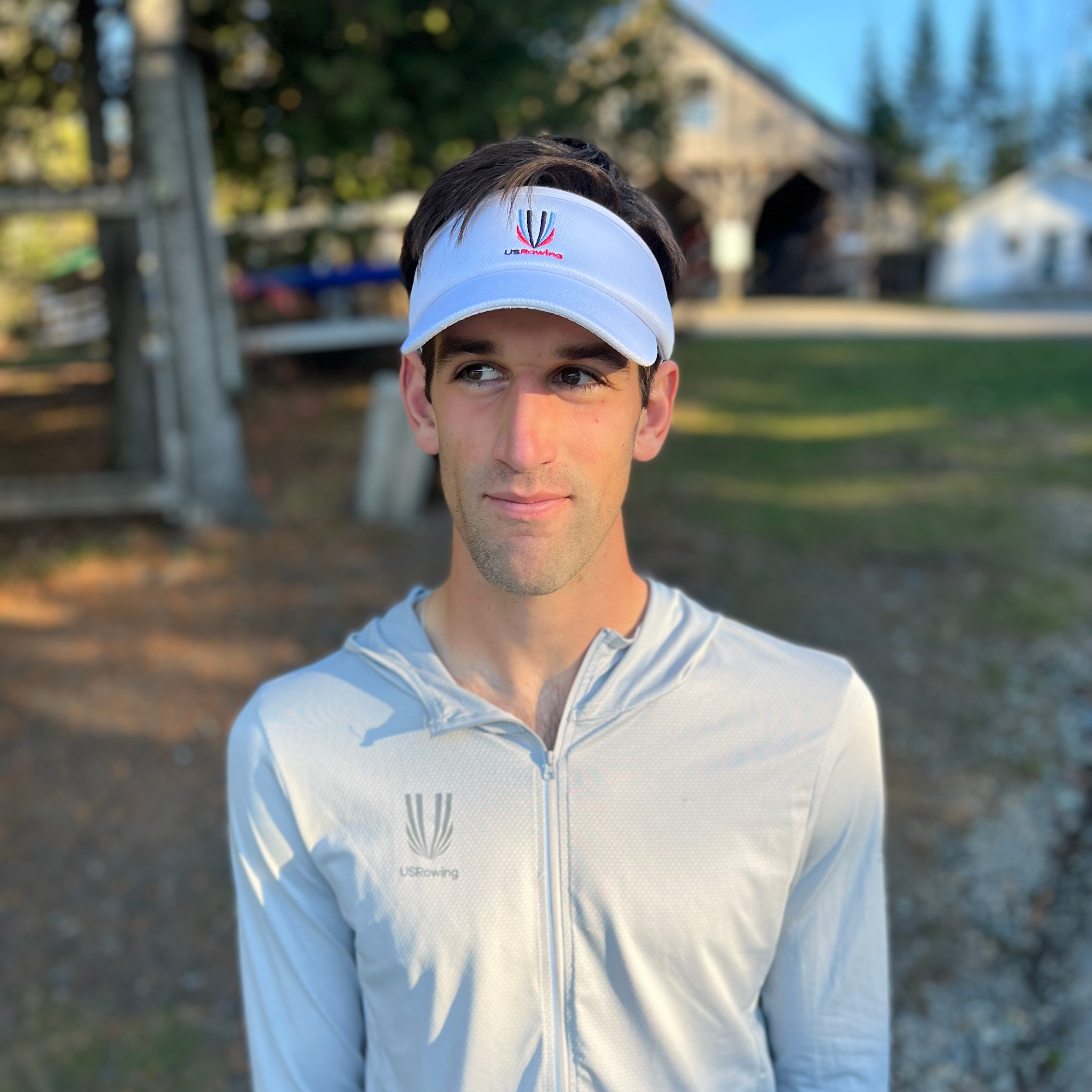 A deep bill and sturdy elastic band makes this the most comfortable visor you'll pull out of your closet. Band reads "UNITED STATES ROWING". Functional and stylish you can protect your eyes and let your hair fly free.